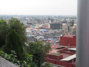 View of the plaza where the pilgrims camp out.